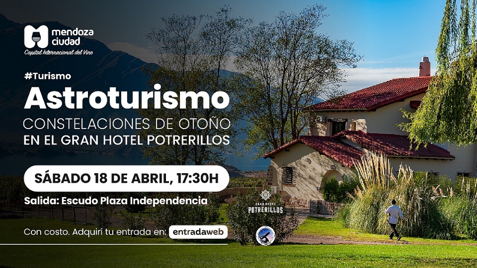 La Ciudad de Mendoza invita a vivir una experiencia diferente durante abril con la propuesta de astroturismo "Constelaciones de Otoño", una actividad que combinará naturaleza, astronomía y gastronomía en el imponente entorno de montaña donde se encuentra el emblemático Gran Hotel Potrerillos.