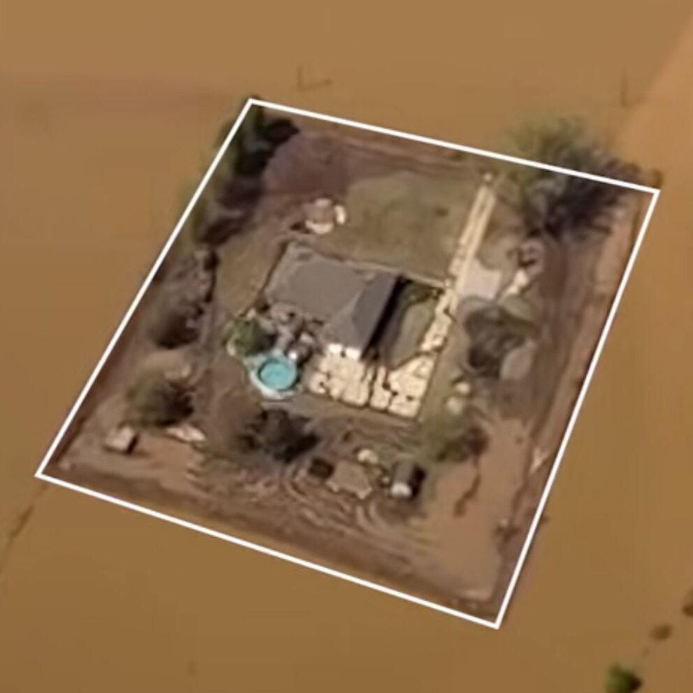 Imágenes aéreas que mostraban la casa de Humphrey como la única residencia intacta en un mar de agua marrón inundada se volvieron virales.