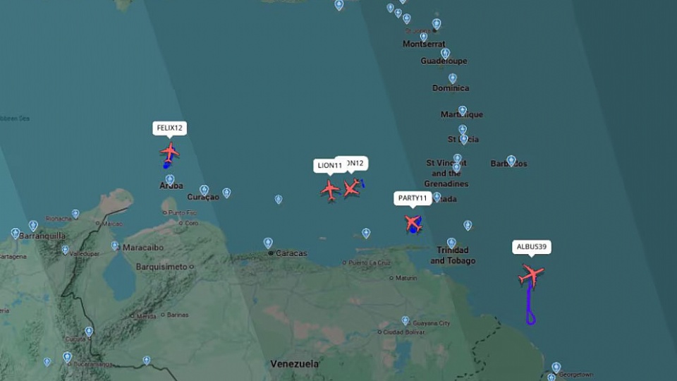 Al menos cinco aviones militares estadounidenses fueron detectados este jueves sobre la costa de Venezuela mediante aplicaciones como Flightradar24. Entre las aeronaves identificadas se destaca un Boeing RC-135, especializado en inteligencia electrónica, que operó en el Caribe bajo indicativo ALBUS39.