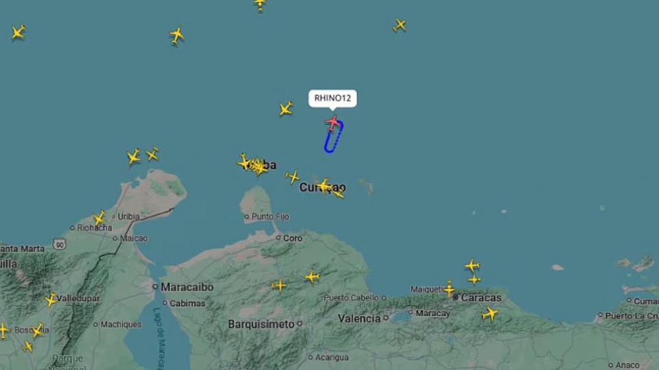 De acuerdo con los registros de la plataforma FlightRadar24, dos aviones identificados con los indicativos "RHINO11" y "RHINO12" fueron observados sobre el espacio aéreo del norte de Curazao y frente al estado venezolano de Falcón