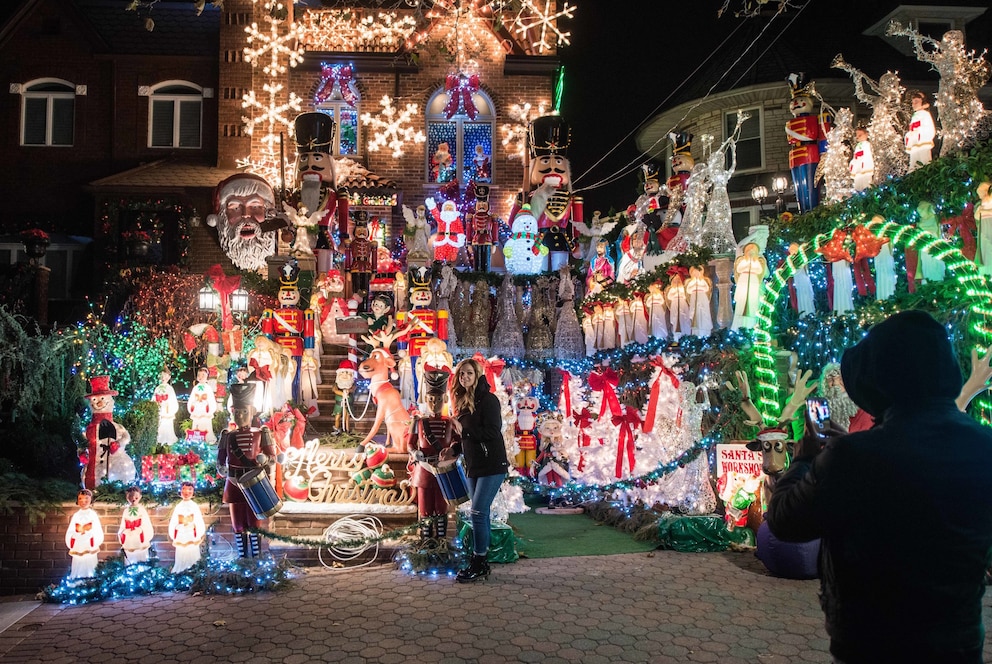 Una vivienda decorada con figuras y luces navideñas se convierte en punto de atracción vecinal en Brooklyn, donde las celebraciones de fin de año refuerzan la participación comunitaria y el encuentro intergeneracional