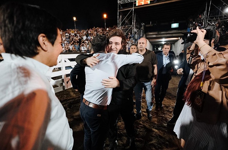 El libertario fue ovacionado por un público cercano al cordobesismo. La candidatura de Bornoroni, atada al éxito del plan económico.