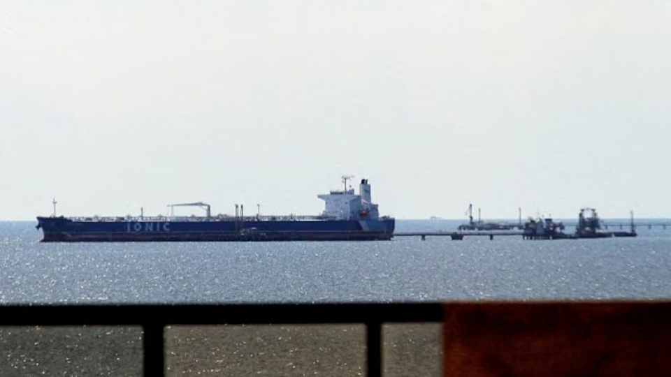 El petrolero Minerva Astra, de bandera griega y fletado por Chevron, espera frente al puerto de Bajo Grande, en Maracaibo