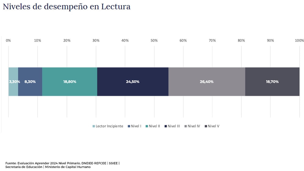 Los resultados de las pruebas Aprender 2024, que evaluaron la alfabetización de alumnos de tercer grado de todo el país, revelaron que solo el 45% de los estudiantes alcanza los niveles de lectura esperables al cerrar el primer ciclo, es decir, menos de la mitad de los alumnos evaluados.