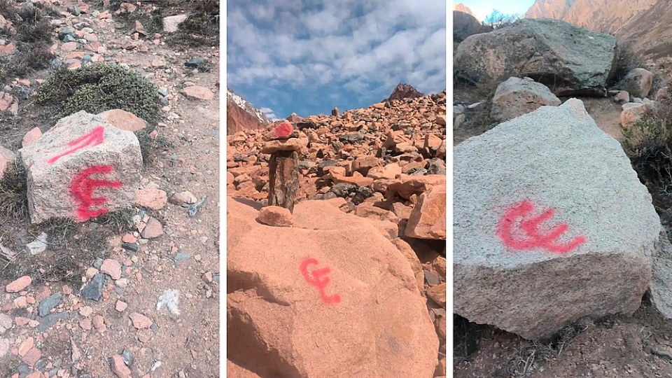 El hecho ocurrió el lunes y fue denunciado por efectivos de Guardaparques, luego de que un grupo de andinistas se presentó en la delegación de Tunuyán para denunciar que habían encontrado rocas pintadas con aerosol rojo en el Cajón de Arenales, un área protegida dentro de la Reserva Manzano Histórico por Río de Piuquenes.