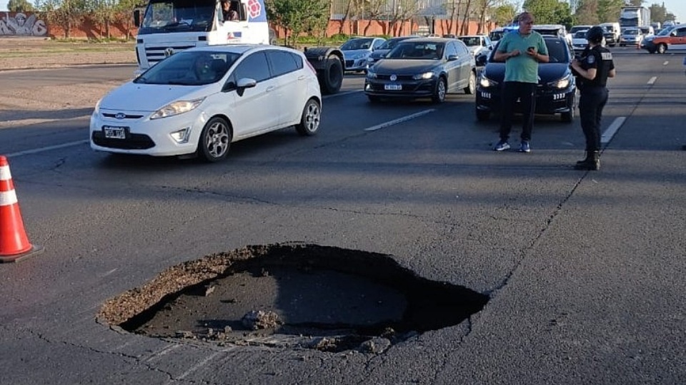El origen del inconveniente está en la rotura de un caño de gran antigüedad, instalado incluso antes de la construcción del acceso. La falla en la infraestructura generó primero un pozo pequeño, que luego se amplió, obligando a interrumpir el tránsito y realizar reparaciones inmediatas.