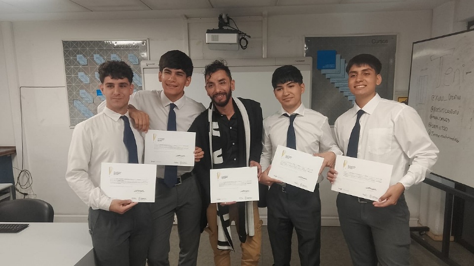 Los alumnos Jonathan Gabriel Blanes, Pedro Ciaramitario Peralta, Xavier Otoniel Gómez y Santiago Joaquín Pamelin integraron el equipo que superó la etapa final, en la que compitieron más de 600 estudiantes de escuelas técnicas de todo el país. El docente Franco Gastón Aranciva fue reconocido por su acompañamiento pedagógico.