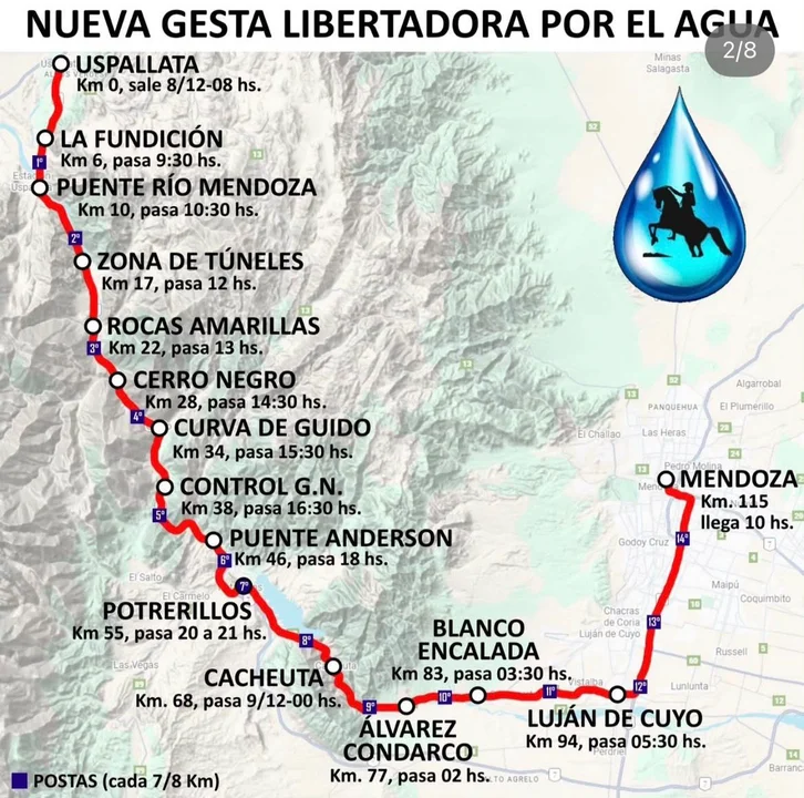 La Asamblea por el Agua de Uspallata inició la "Gesta Libertadora por el Agua", una caravana a pie que se dirige hacia la capital provincial, donde mañana la Legislatura buscará aprobar el proyecto minero San Jorge.