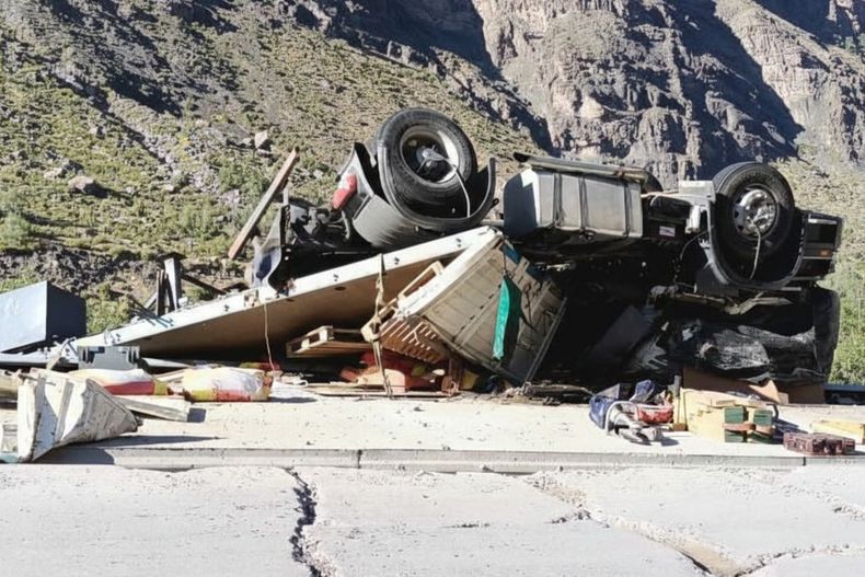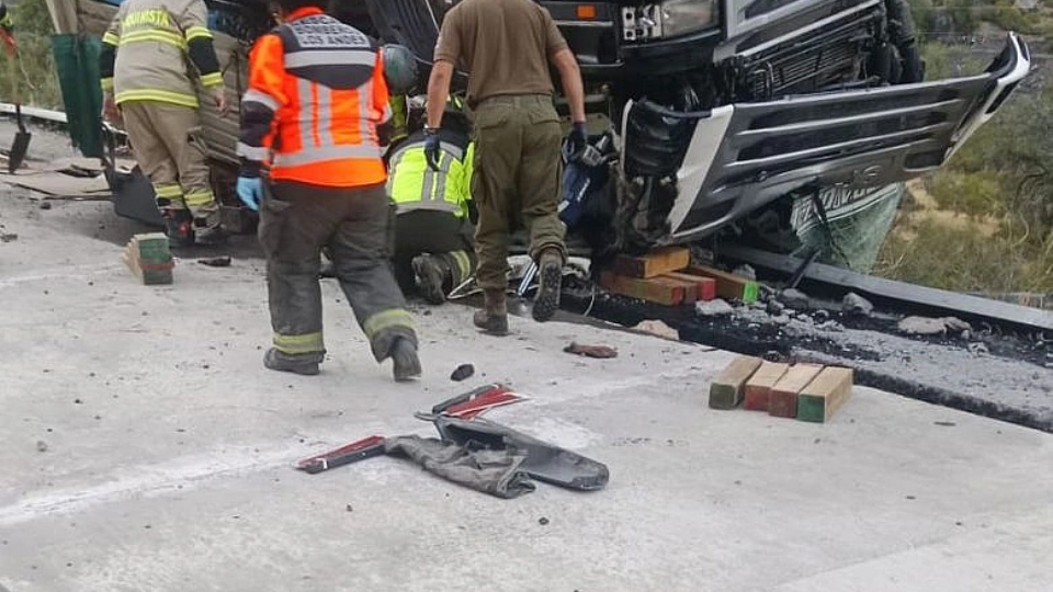 Personal de emergencia y autoridades chilenas trabajaron en el lugar para asistir la situación y retirar el camión siniestrado.