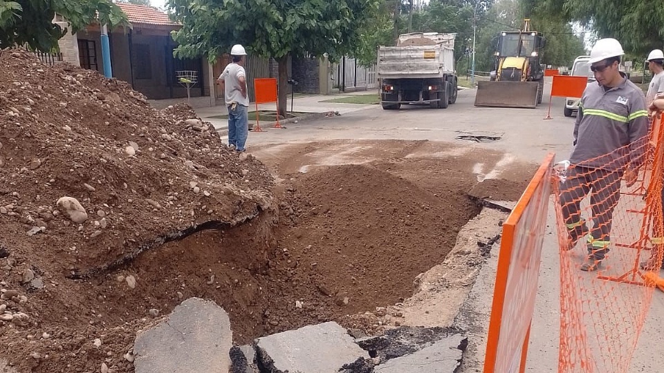 Según Aysam, recientes tormentas sobrecargaron el sistema, provocando el ingreso de agua de lluvia a la red cloacal. Esta presión generó una filtración en una boca de registro, que se extendió hacia una excavación previa, afectando la compactación del suelo. El paso de un camión de 25 toneladas terminó de ceder el terreno.