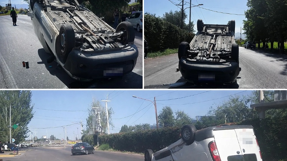 Un violento choque entre un vehículo utilitario y un auto particular terminó este miércoles por la tarde con un vuelco y dos personas hospitalizadas en Luján de Cuyo. El hecho se registró alrededor de las 16.20 en la intersección de Aráoz y Acceso Sur.