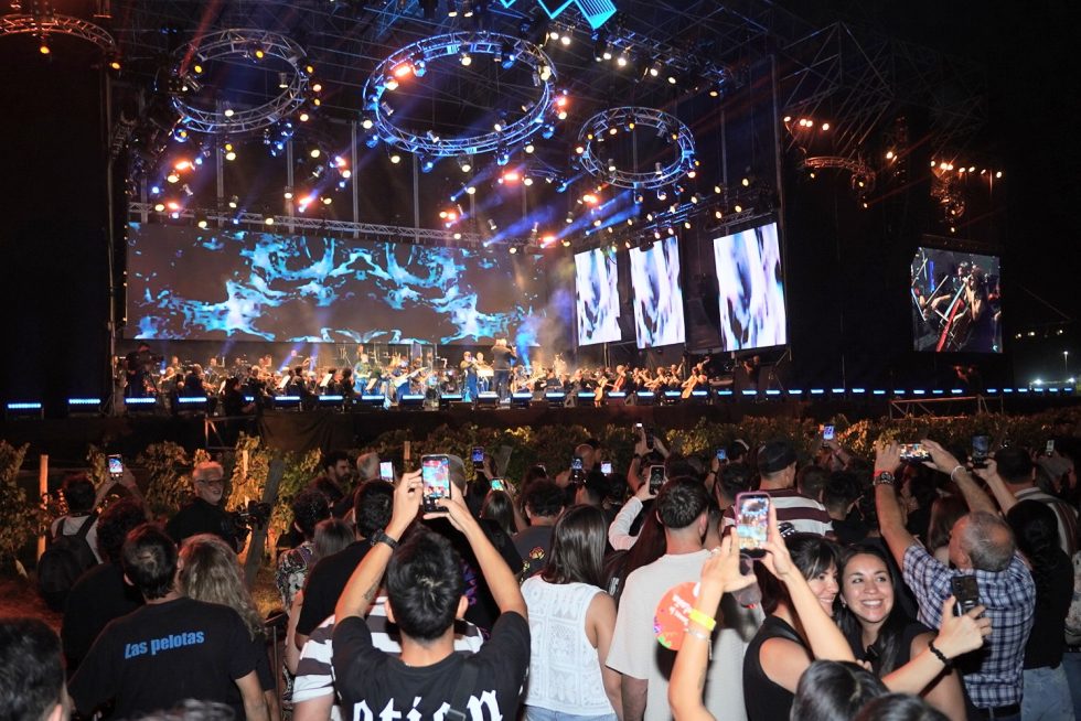 El concierto central estuvo a cargo de Las Pelotas junto a la Orquesta Filarmónica de Mendoza, en una fusión que combinó clásicos del rock nacional con arreglos sinfónicos.