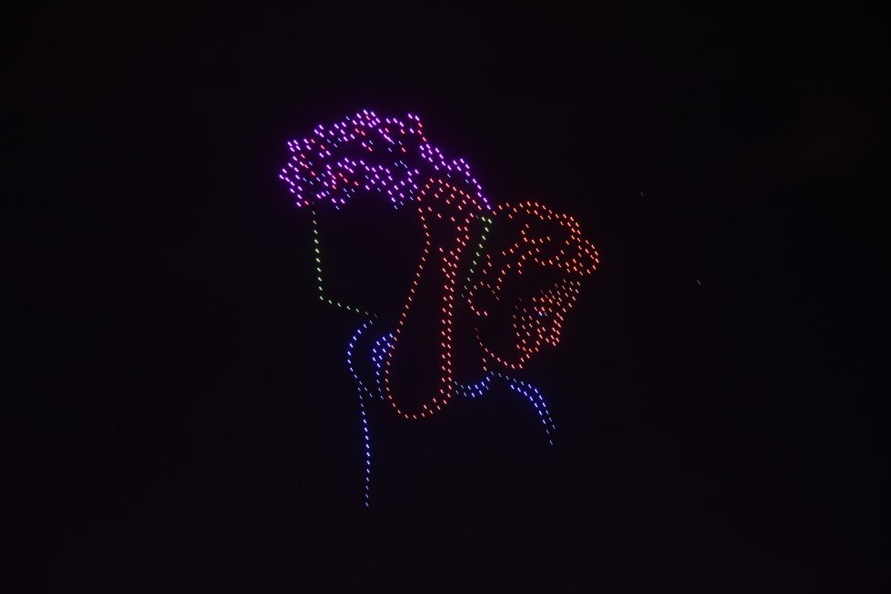 Tras finalizar el espectáculo artístico, el cielo del teatro se iluminó con un show de drones, a cargo de Iluxman Artistic Development, que sorprendió al público con distintas figuras vinculadas a la historia y la identidad vendimial. Entre ellas se destacaron las representaciones de Delia Larrive Escudero, la Virgen de la Carrodilla, el general José de San Martín y diversas copas de vino, que brillaron sobre el cielo mendocino como cierre visual de la celebración.