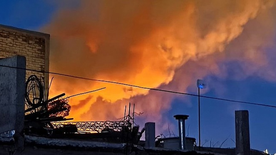Un incendio de gran magnitud se desató en dos galpones junto a la Feria de Guaymallén en la tarde de este sábado. A una bombera le cayó parte del techo y está fuera de peligro.