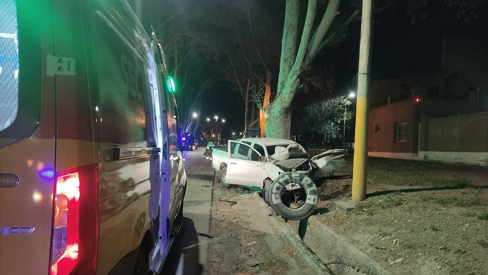 El hecho ocurrió en la intersección de calle Malabia y San Martín, cuando una Toyota Hilux que circulaba de este a oeste colisionó con un colectivo. A raíz del choque, el conductor perdió el control del vehículo, que terminó desplazándose hacia la banquina y se estrelló contra un árbol.