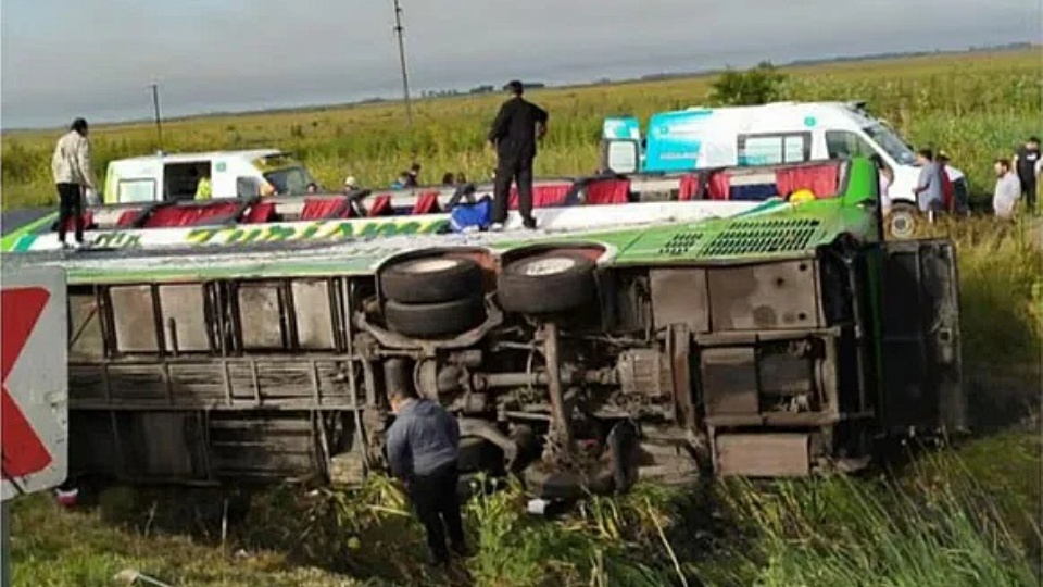 El siniestro ocurrió a la altura del kilómetro 325, a la altura de la localidad de General Pirán, alrededor de las 8. Por motivos que se investigan, el micro sufrió un siniestro y terminó volcado sobre el cantero central con 56 pasajeros a bordo.