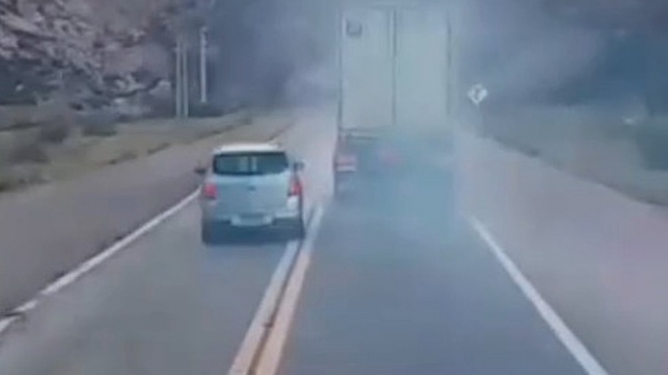 Según informaron, las imágenes fueron registradas en el kilómetro 1.121 de la Ruta Nacional 7, en el sector conocido como Cerro Negro-Guido. Allí, Valles realizó un sobrepaso peligroso a un camión, maniobra que puso en alerta a los testigos.