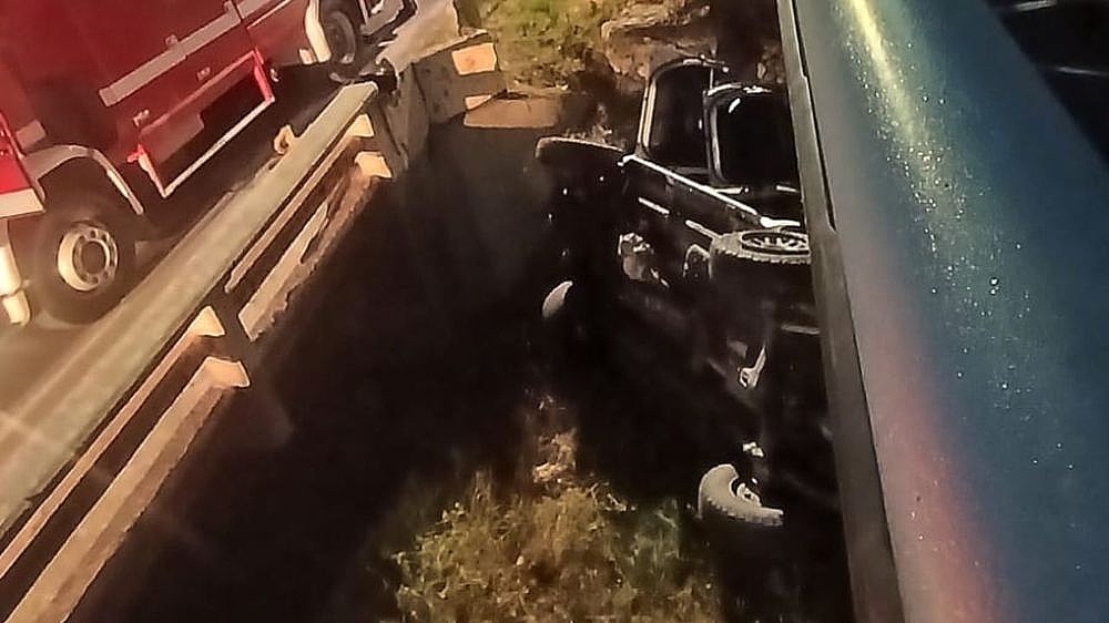 El siniestro ocurrió durante la madrugada. La camioneta cayó tras colisionar con otro vehículo.