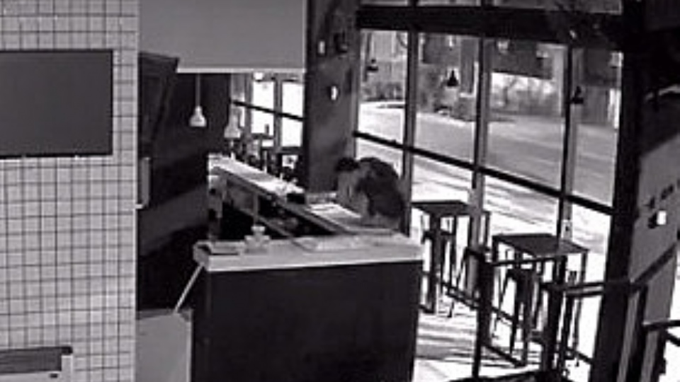 En ese momento la alarma sonó muy fuerte, y como si tuviese el tiempo medido, el ladrón fue hasta la barra del lugar, miró dónde estaba la caja registradora y la arrancó.