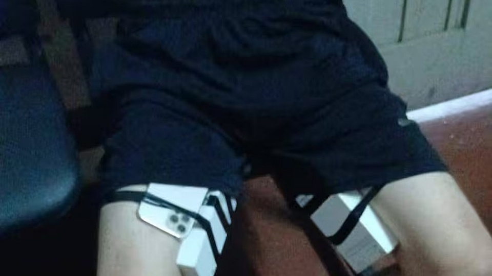 Uno de los delincuentes con los celulares pegados en su cuerpo cuando intentaba escapar