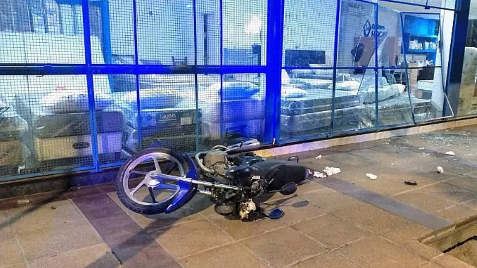 Fue en esa instancia donde terminó estrellándose en la moto Marca Zanella Rx 150 contra el frente de una casa de sommiers, destruyendo la vidriera.