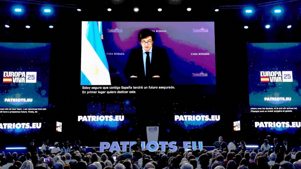 Tras cancelar su visita a España, el presidente Javier Milei participó por videomensaje en el acto organizado en Madrid por el partido Vox. "Hoy me tocó estar en mi país defendiendo con uñas y dientes los logros de esta gestión", afirmó el mandatario, quien suspendió el viaje después de la derrota electoral en la provincia de Buenos Aires.