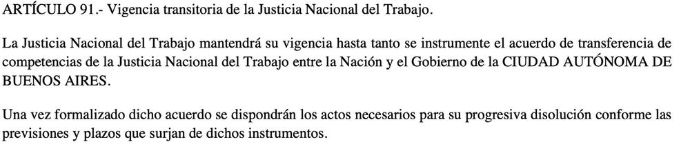 El artículo 91 le pone fecha de defunción a la justicia nacional en lo laboral
