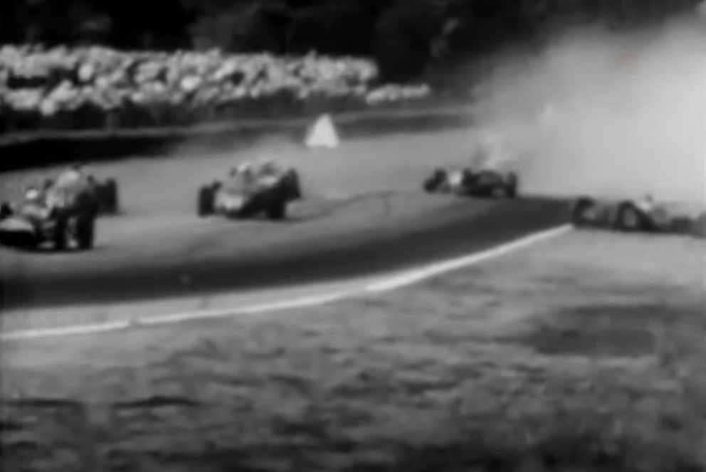 El accidente fue provocado por el choque de las ruedas de Von Trips y Clark