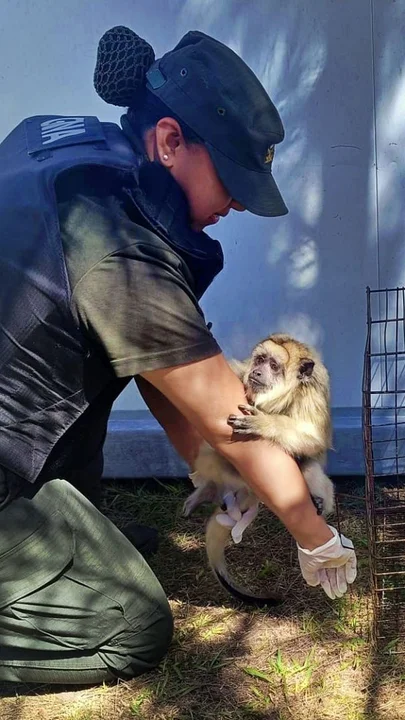 Un mono de la especie "Alouatta caraya" fue rescatado cuando estaba en cautiverio en un domicilio particular del barrio Puerta de Hierro en el partido bonaerense de La Matanza, y fue trasladado al EcoParque Interactivo de Palermo.