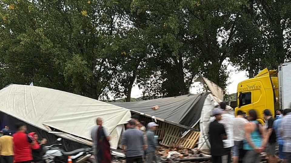 Ante esa situación, el chofer giró hacia la banquina para evitar el impacto, pero terminó colisionando contra un camión Volvo que estaba estacionado en ese lugar. A raíz de eso, se produjo el vuelco del semirremolque del rodado al mando del camionero brasileño.