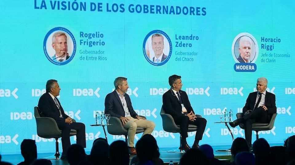 En el escenario del panel estuvieron los gobernadores Alfredo Cornejo (Mendoza), Rogelio Frigerio (Entre Ríos) y Leandro Zdero (Chaco), quienes mantienen una alianza electoral y política con La Libertad Avanza (LLA). Los tres comparten listas de candidatos en sus provincias y son las caras visibles de limitado apoyo federal que mantiene el oficialismo.
